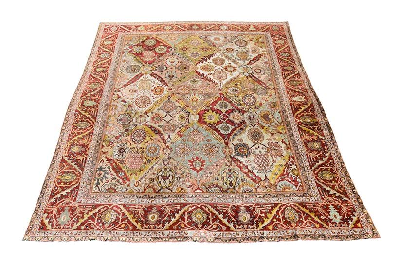 Also included in Day One of the sale, we have Lot 9, an antique Ziegler Mahal carpet of 17th century Polonaise design, circa 1890. This carpet is associated with a group of weavings originally commissioned in Persia for the European market during the late 19th century by the company Ziegler & Co., to compliment Western furnishing tastes. These quickly became popular across the UK and Europe, thanks to their unique, grand scale drawings, quiet formality, and understated colours - this example borrows design characteristics from earlier ‘Polonaise’ carpets of the 17th century, produced as high-value diplomatic gifts for the European aristocracy.