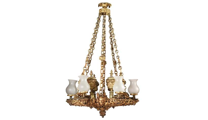 Lot 250: A Regency gilt-bronze four light colza chandelier by James Smethurst, circa 1820-1830