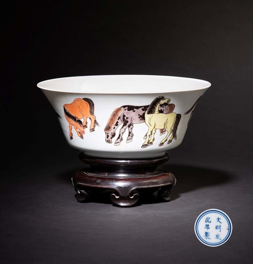 This sale comprises 89 lots selected from this remarkable collection, including examples of Qing painted enamels, blue and white porcelain, archaic and archaistic jade carvings, bronzes, classic Kangxi Famille Verte porcelain and cinnabar lacquer.